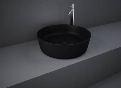 Nadpultni umivalnik RAK Feeling Slim okrogli, črna matt. Premer 46cm. Vključen v ceno.