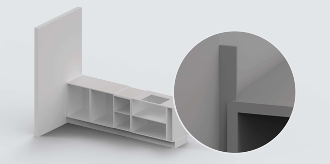 Zahvaljujoč na milimeter prilagodljivim zaključkom (eden izmed rezultatov projekta »Sistemska rešitev prilagodljivih sklopov kuhinj v obliki parametričnega modela«) se bo vaša nova kuhinja 100% prilagodila vašemu prostoru – tudi v primeru neravnih sten ali nenatančnih izmer.